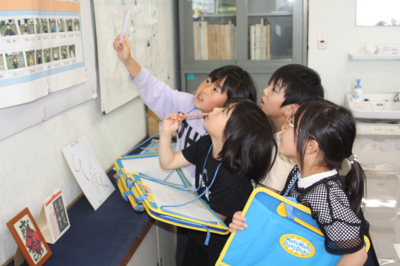 1年生が生活科の一環で、校長室を訪れました。学校探検は、学校の様子について、こどもたちが自分たちで探検することで、より深く理解し、興味や関心を深めることを目的としています。