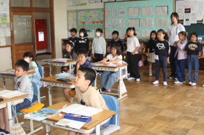 1・2年生が地域の方のお力を借りてサツマイモのつるさしを行いました。植物に親しみ大切にしようという気持ちをもつとともに、お世話になった人へ感謝する気持ちが育っています。