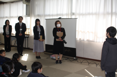 新任式 投稿: ホームページ編集者 (04/08) 4月8日(火) 富士根北小より教頭先生、富丘小より1年生担任、東小より3年生担任、芝富小より事務の先生が赴任してきました。常勤職員12名で、こどもたちの指導にあたっていきます。どうぞ、よろしくお願いいたします。 -