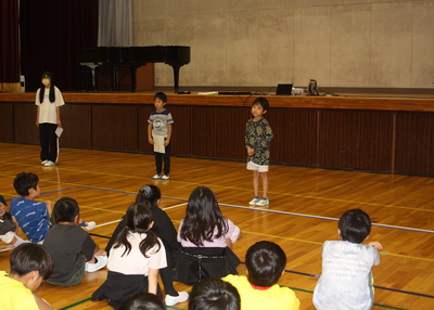 集会 投稿: ホームページ編集者 (10/01) 10月1日(水) 10月の集会を行いました。校長からは、「運動会ではみんなで仲良く、心を一つにして、多くの人を感動させましょう」という話がありました。1・3・5年生の代表からは生活目標「時間を意識してすばやく行動しよう」の振り返りが発表されました。振り返る力が育成されています。また、安全担当からは、危険を予知することの大切さについての話がありました。安全・安心に過ごせる学校づくりに努めていきます。 -