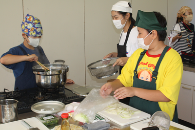 調理実習(6年) 投稿: ホームページ編集者 (11:44) 10月7日(火) 6年生が、「育ち盛りランチを作ろう!!」を課題に、調理実習を実施しました。こどもたちは、自分たちで考えた主食・主菜・副菜・汁物を上手に作ることができました。食事の役割を考え、食事を大切にしようとする態度が育成されています。 -