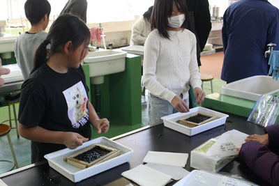 芝川ノリ 投稿: ホームページ編集者 (15:42) 12月5日(金) 4年生が、歴史ある地元特産品の理解や環境学習のまとめとして、地域の方に芝川ノリの作り方を教えてもらい、実際に試食してみました。情報を選び活用する力が育成されています。 -