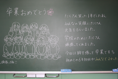 卒業式 投稿: ホームページ編集者 (12:45) 3月19日(木) 9名の卒業生が巣立っていきました。別れの言葉では、温かなメッセージを伝えていました。本校は、中学校との円滑な接続を図り、義務教育9年間で身に付けたい資質・能力を確実に身に付けるように努めてきました。卒業生たちは、今後、中学校でさらなる飛躍をしていくことでしょう。御卒業おめでとうございます。 -