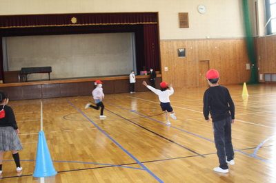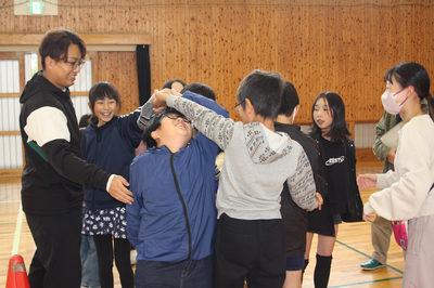 こどもたちが主体的に活動することを目的とした「こどもイベントの日」を開催しました。今回はハッピースマイル委員会(児童会)と笑顔でお届け放送委員会が合同で「チーズバーガーじゃんけん」と「人間知恵の輪」を企画・実行しました。自ら考え行動する力や協働する力が身に付きました。