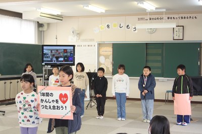 集会を行いました。校長からは、「平和とはみんなが笑顔でいること、そして、その笑顔はみんなの優しい行動から生まれる」という話がありました。その後、3月の生活目標「1年間の感謝を伝え合おう」について3年生から話がありました。御家庭におかれましても、話題にしてみてください。